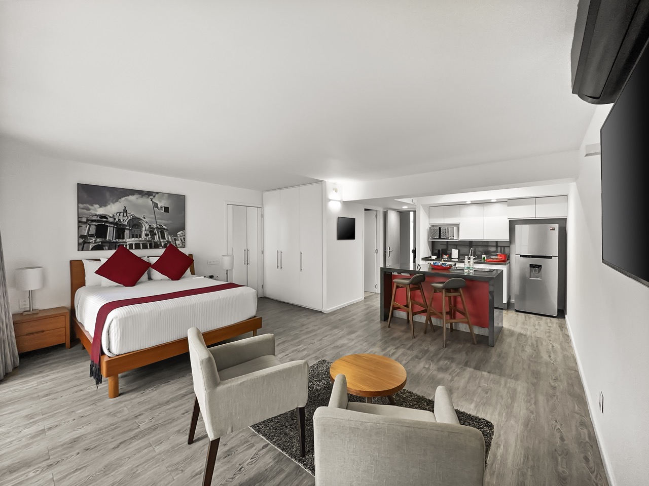 Distribución: 2 habitaciones y área de descanso.